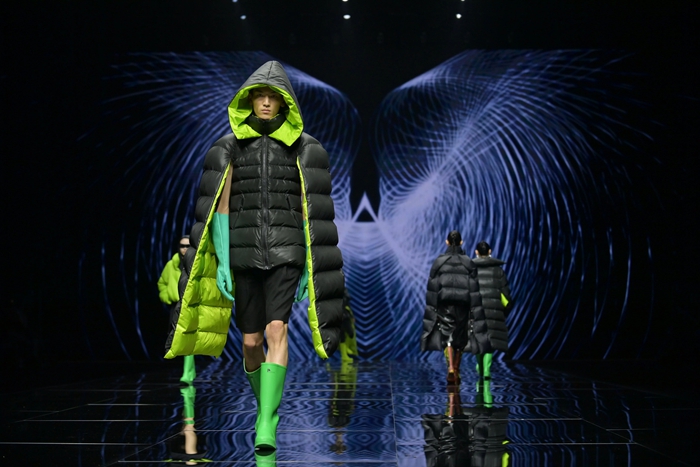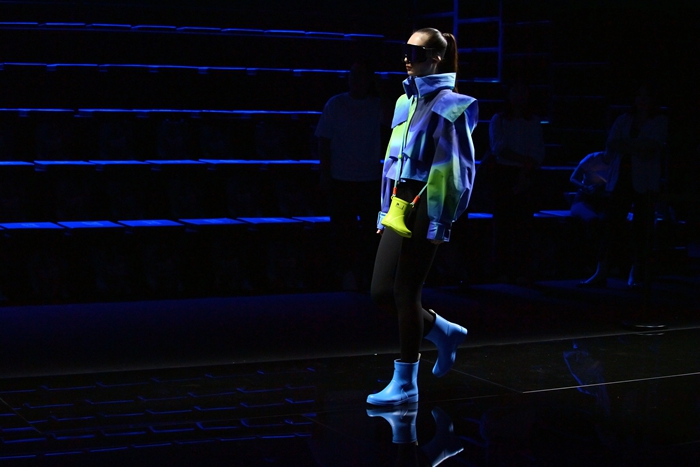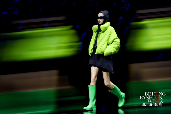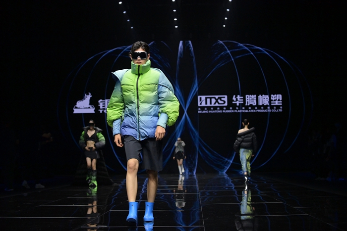 整個(gè)秀場(chǎng),靚麗前衛(wèi)的膠靴或踏于足下,或成為時(shí)尚新品挎于體側(cè),伴著強(qiáng)勁的樂(lè)曲,綻放出化工科技在時(shí)尚前沿的另類美學(xué)。