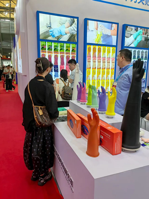 通過現(xiàn)場(chǎng)試用體驗(yàn)、功能演示等互動(dòng)環(huán)節(jié),瑞京公司人員向觀眾直觀呈現(xiàn)出產(chǎn)品的舒適性和防護(hù)性能,吸引了眾多客商駐足咨詢。公司產(chǎn)品獲得現(xiàn)場(chǎng)觀眾的一致好評(píng),同時(shí)進(jìn)一步鞏固了瑞京公司在乳膠手套領(lǐng)域的品牌影響力。