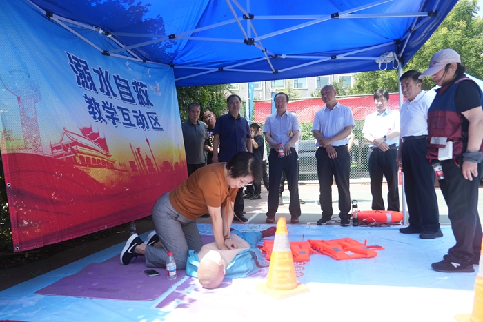 演練結(jié)束后,舉辦方在大廈籃球場(chǎng)開(kāi)啟安全咨詢體驗(yàn)活動(dòng)。整個(gè)活動(dòng)共設(shè)置了6個(gè)項(xiàng)目,分別為擁擠踩踏應(yīng)急處置體驗(yàn)區(qū)(充氣帳篷)、消防隱患排查試驗(yàn)區(qū)、電動(dòng)車電池穿刺爆燃體驗(yàn)裝置、溺水自救互救教學(xué)培訓(xùn)區(qū)、醉酒交通AR模擬體驗(yàn)、安全標(biāo)志互動(dòng)區(qū)?;顒?dòng)現(xiàn)場(chǎng)氣氛熱烈,盡管天氣炎熱,但絲毫沒(méi)有減弱大家體驗(yàn)掌握應(yīng)急技能的熱情。