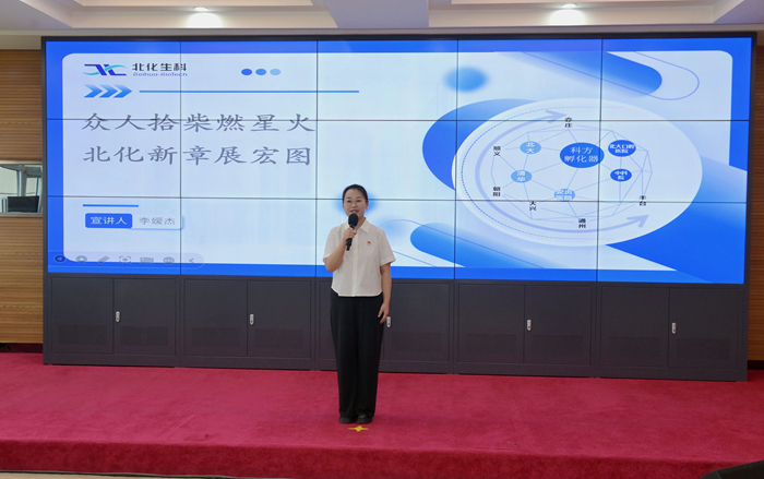 在首先舉行的“職工宣講比賽決賽暨先進事跡報告會”上,從預(yù)賽29名參賽者中脫穎而出的選手們,依次走上講臺,深情宣講扎根“三個北化”建設(shè)一線的鮮活故事。來自北化生科、華騰檢測、化研院、北搪公司的4名宣講員進行了精彩的宣講展示,他們生動講述了北化人面向生物醫(yī)藥新“藍海”的無畏拓進,在市場營銷、科研開發(fā)、信訪維穩(wěn)等重點工作中攻堅克難的感人故事。來自技師學(xué)院、北普公司、北化房地產(chǎn)公司的3名宣講員進入決賽,他們或講述職業(yè)教育的酸甜苦辣、或反映現(xiàn)代產(chǎn)線的紛繁復(fù)雜、或展示酒店行業(yè)的微笑服務(wù),娓娓道來的深情告白,無不體現(xiàn)出北化人心系首都發(fā)展安全、情系百姓健康幸福的錚錚誓言。