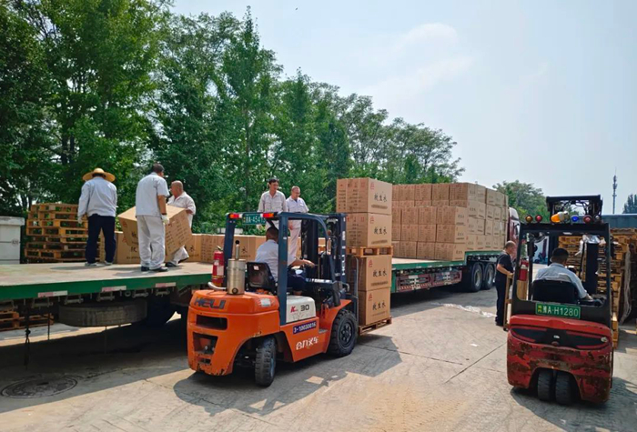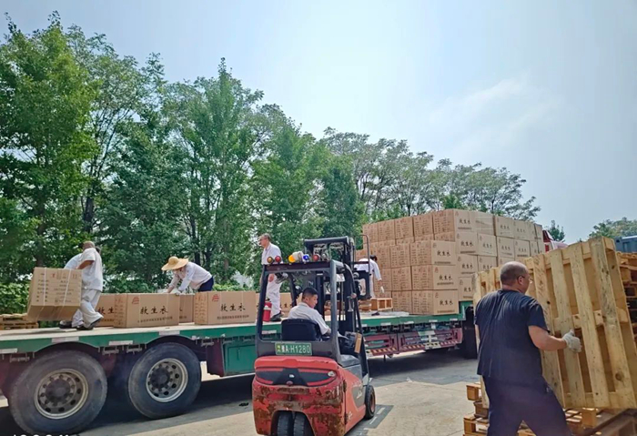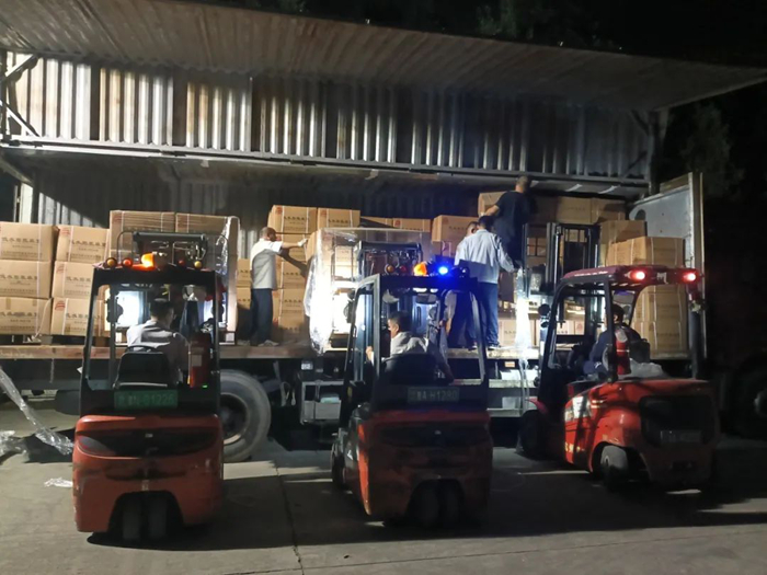 華騰化工立即調(diào)度人力、物力,爭(zhēng)分奪秒組織應(yīng)急物資配送。歷經(jīng)5個(gè)多小時(shí)不間歇備貨、裝載,滿(mǎn)載應(yīng)急物資的4輛大貨車(chē)陸續(xù)發(fā)車(chē),前往抗汛一線(xiàn)。
