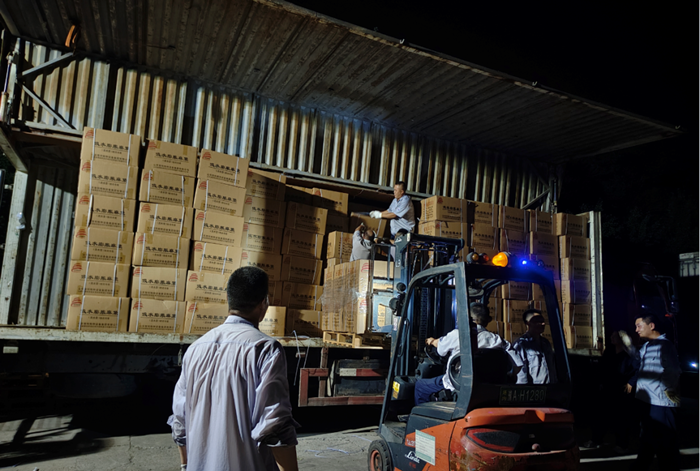 剛剛出庫(kù)完畢,還沒(méi)等干部職工歇歇腳,17時(shí)左右,市應(yīng)急局再次發(fā)來(lái)指令,追加雨衣3700套,華騰化工迅速調(diào)度第5輛專(zhuān)用車(chē)輛進(jìn)行物資裝車(chē),干部職工也馬不停蹄地投入到裝載工作中。正在酣戰(zhàn)之時(shí),18時(shí)許,市應(yīng)急局第三道指令接踵而至,追加18000條編織袋和32000條吸水膨脹麻袋。華騰化工再次緊急調(diào)度第6、7輛專(zhuān)用車(chē)輛,現(xiàn)場(chǎng)干部職工發(fā)揚(yáng)連續(xù)作戰(zhàn)精神,在3小時(shí)內(nèi)完成全部應(yīng)急物資的裝車(chē)、發(fā)貨任務(wù)。