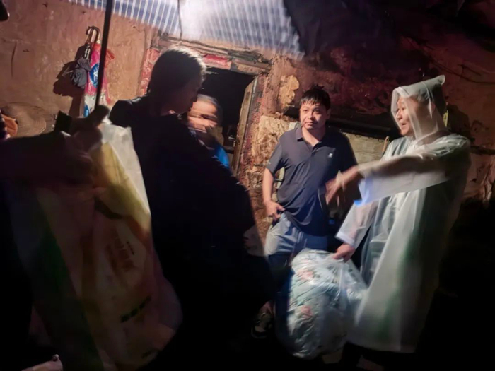 汛情就是命令。面對突如其來的洪水,本就日夜堅(jiān)守在村委會(huì)的李東,與村委委員一起連夜趟著洪水,去多戶村民家中查看水位和房屋漏雨情況,在冒雨拉網(wǎng)式檢查中,李東和村委委員先后將2戶有安全隱患房屋內(nèi)的6名村民,連夜轉(zhuǎn)移至村委會(huì)臨時(shí)安置點(diǎn)。當(dāng)大家要喘口氣歇歇腳兒時(shí),28日凌晨3時(shí)許得到消息,位于村口的小商店出現(xiàn)險(xiǎn)情,60多歲的老兩口被困店內(nèi)。接到消息,李東和村委委員緊急出發(fā)。由于洪水流速非常快,他們小心翼翼地扶著墻體前行。在到達(dá)商店后,此時(shí)洪水已經(jīng)淹沒房屋門檻灌入店內(nèi)。面對緊急情況,李東和村委會(huì)干部們?nèi)饩缺焕Ю先?。李東在前面小心探路,另外兩人護(hù)住老人,在大雨中最終將兩位老人撤離到安全地帶。