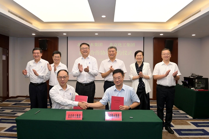 7月15日,北京化工集團(tuán)與北京排水集團(tuán)簽署戰(zhàn)略合作協(xié)議。化工集團(tuán)黨委書記、董事長陳宇,黨委副書記、董事、總經(jīng)理?xiàng)钚褫x,黨委常委、副總經(jīng)理孫紹剛,副總經(jīng)理張榮寰;排水集團(tuán)黨委書記、董事長張建新,黨委副書記、職工董事、工會(huì)主席王蘭,黨委委員、副總經(jīng)理張志淵出席簽約儀式。