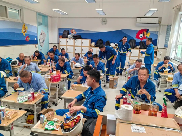 為了保證充裝演練用氣,同時又不影響日常配送工作,共產黨員于江和同事們,先將充裝用氣瓶配送至充裝演練場所,隨后又返回公司再裝上客戶產品,最后再到充裝演練場所將空瓶運回公司。卸完車后,往往已經是半夜時分,而這只是他們保障服務期間日常工作的縮影。