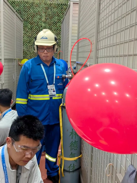 在這期間,為保障產品運輸安全高效,北普公司提前對全部保障車輛進行維修保養(yǎng);針對工作現(xiàn)場空間有限、人員較多的實際情況,公司專門定制了鋼瓶推車,消除了鋼瓶因手動挪動易發(fā)生碰撞、倒伏的隱患。此外,為確保充裝過程的絕對安全,公司還明確要求,鋼瓶到位后,必須用綁帶與氣球籠體固定,以免對現(xiàn)場操作人員造成傷害??梢哉f,在演練和正式活動中,北普公司始終將安全作為頭等大事,對每一個細節(jié)都實施清單化管理,最終確保了氣球充裝保障任務的全過程安全。
